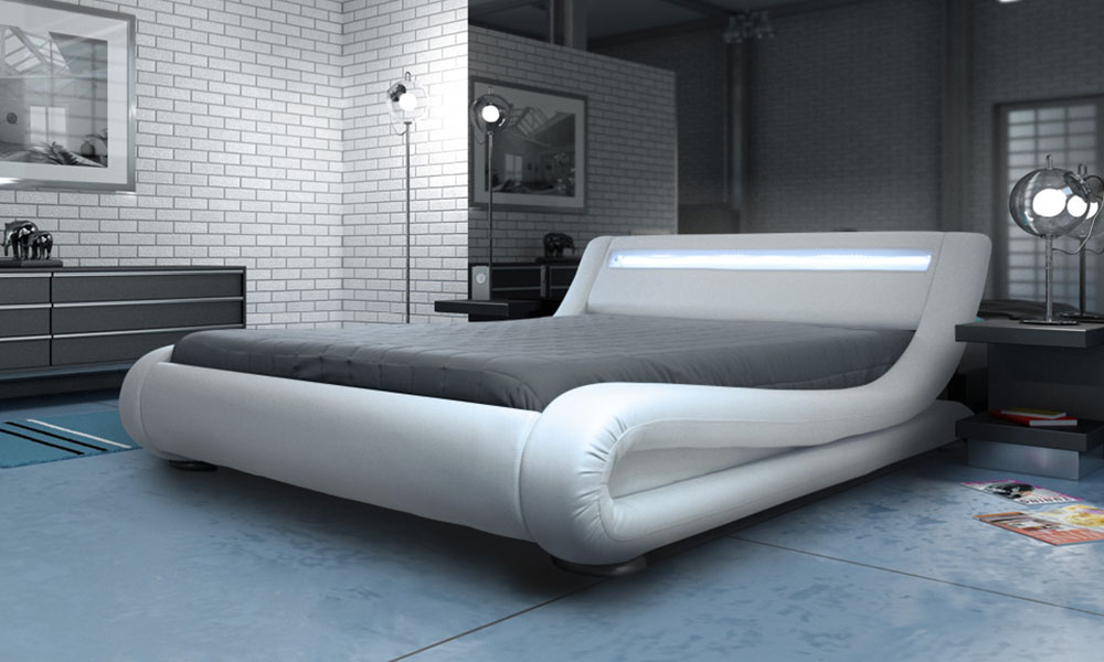 Onda Legno White With Led Lights Platform Bedroom Sets Modern